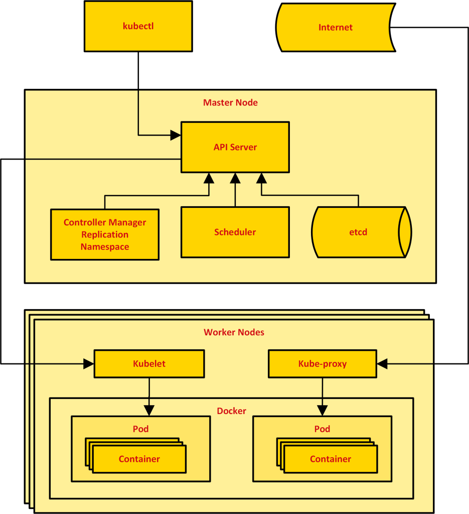 The Kubernetes architecture diagram is shown in below, where Pod is its basic operating unit, and each Pod can contain multiple Docker containers, which share resources, but in this paper, each Pod will only run one Docker.
